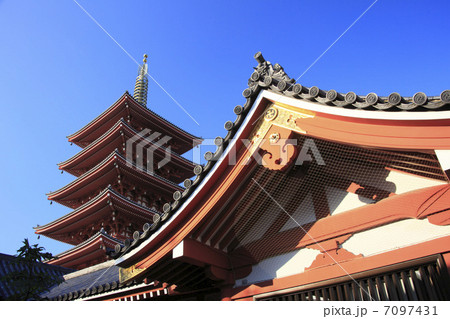 東京都・金龍山浅草寺の宝蔵門と五重塔