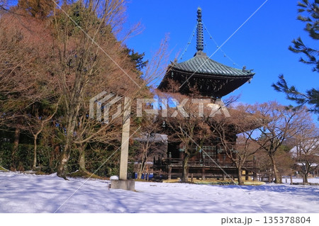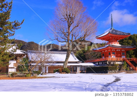 大覚寺(京都市右京区)雪景色 心経宝塔見る