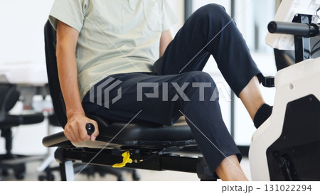公園でストレッチ・運動・準備運動・ワークアウトするミドル男性