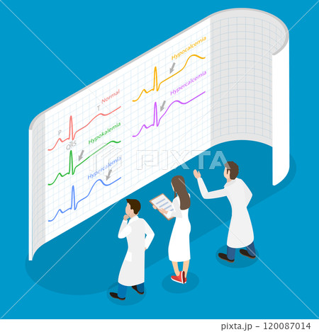 3D Isometric Flat Vector Illustration of ECG Changes, Cardiac Rhythms