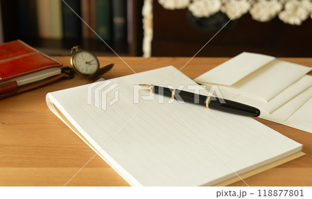 便箋・封筒とレトロな部屋 手紙 便箋 本棚 自筆 挨拶状 遺言書作成
