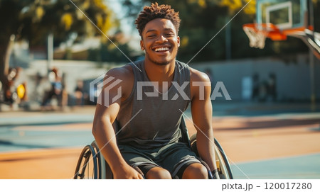 Empowerment and Joy, Young Man in Sports Wheelchair on Basketball Court