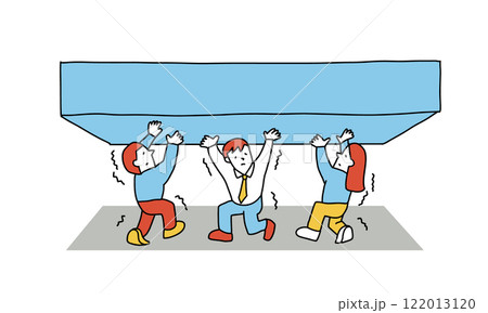 ストレスや負担に耐える若者のイメージイラスト 重たいものを持ち上げる3人のヤングアダルト