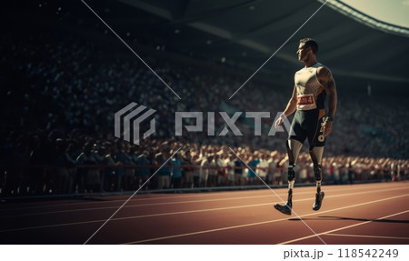 An inspiring athlete with a disability running on the track, embodying determination and resilience.Generated image