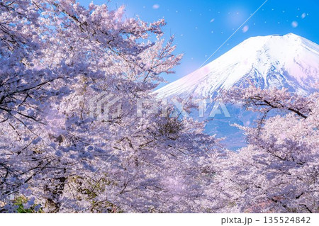 【桜吹雪】忍野村の桜と富士山と桜吹雪【山梨県】