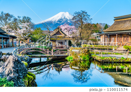 【山梨県_忍野村】早春の忍野八海と富士山 4月