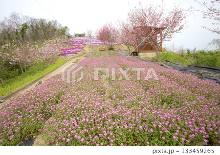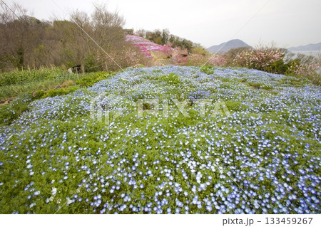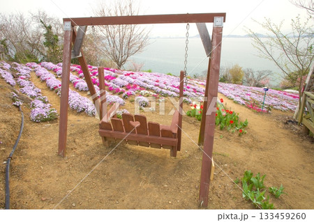 志々島・一面に芝桜やネモフィラの咲く「天空のお花畑」