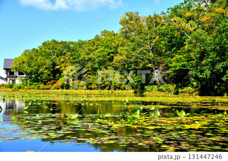 秋晴れの志賀高原 蓮池の水鏡