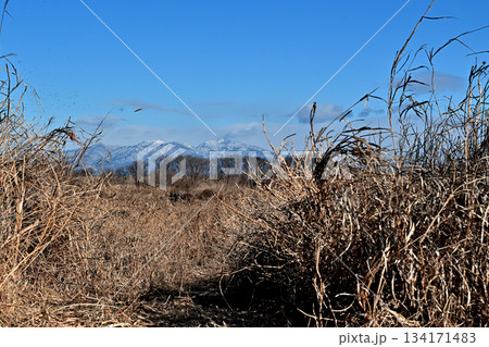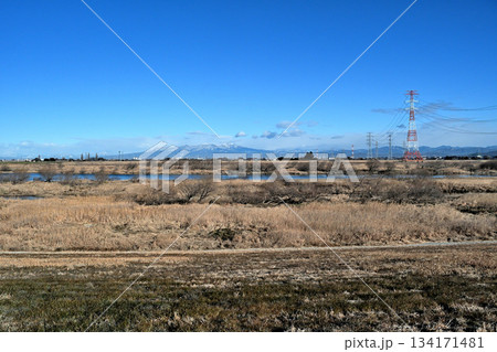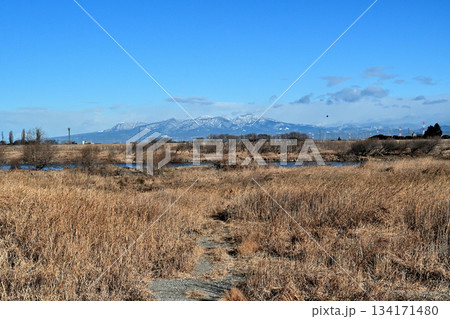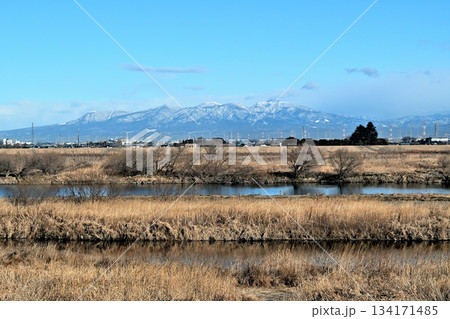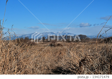 利根川に架かる昭和橋脇の土手から見るとほぼ北北西に聳える赤城山