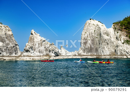快晴の浄土ヶ浜とシーカヤック