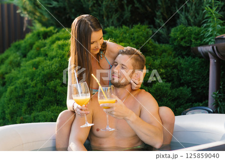 Couple Sharing Drinks In Garden Pool