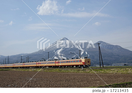 会津磐梯山を背に走る583系電車