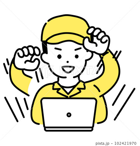 かわいい人物のイラストシリーズ _ 男性の作業員 _ 捗る