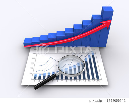 ビジネスの業績グラフを虫メガネで検証、上昇する3Dグラフ