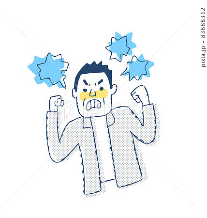 高齢男性が怒って拳を振り上げ地団駄を踏んでいる上半身イラスト