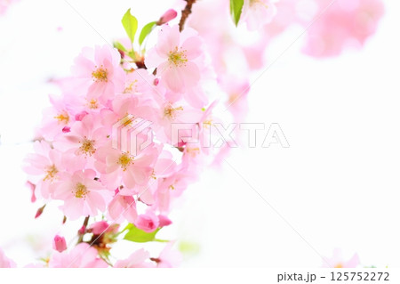 満開の思川桜のクローズアップ 【白背景】 【空背景】