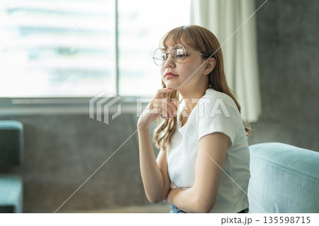 窓辺で物思いにふける20代ビジネスウーマンのポートレート