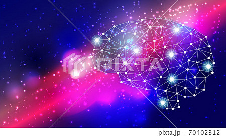 人間の脳または人工知能、宇宙のような広がり、サイエンスのイメージ(とっつきにくいのでガーリッシュにし