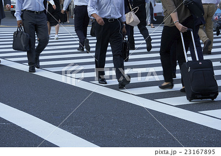 通勤途中 横断歩道を渡る人々