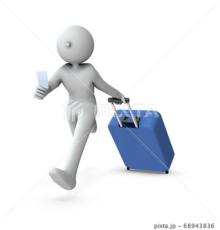 急ぎ足の旅行者。3Dレンダリング。
