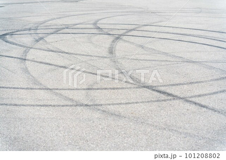 駐車場に付けられたタイヤ痕