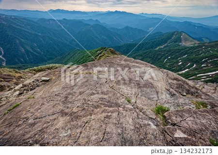 谷川岳・西黒尾根の氷河の跡と尾瀬・日光・上州武尊山の山並み