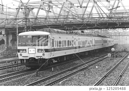 国鉄時代、185系による併結急行「ゆけむり」+「軽井沢」、蕨、1982年10月19日
