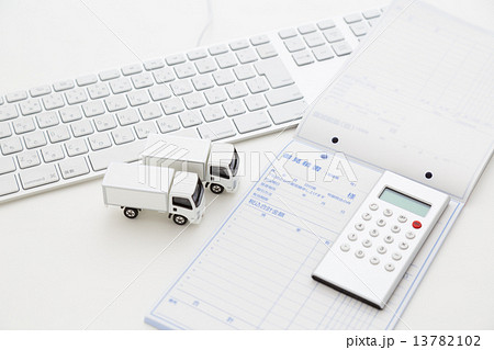 トラックとダンボールと見積書と電卓