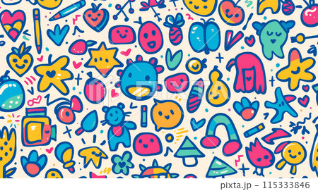 Illustration of colorful doodle crowd cute alien and monster Created with Generative AI technology.