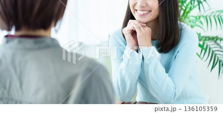 女子会 イメージ シャンパングラスを持って談笑する若い女性たち