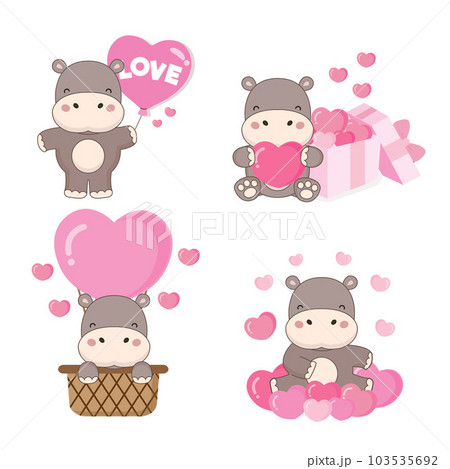 Valentine's day collection with cute Hippo and love elements.