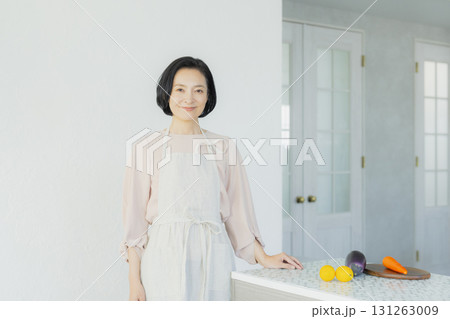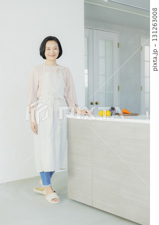 キッチンで家事をするミドル女性