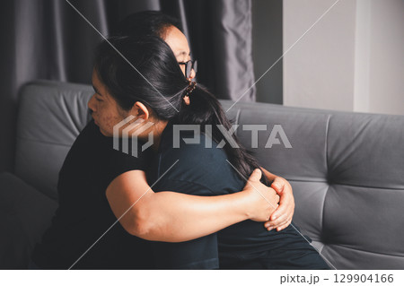 Hope and trust with crisis concept. Closeup, love and holding hands for support, comfort and care with grief, loss and empathy. people and family with compassion, sympathy and healing with bonding.