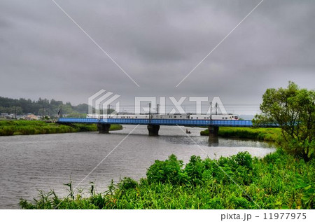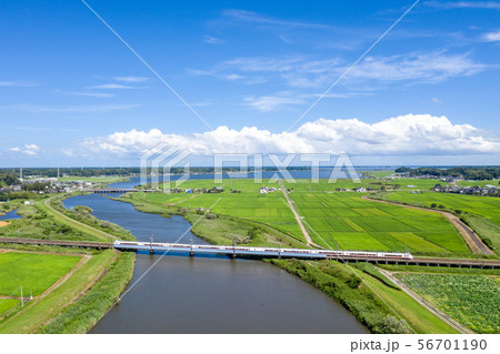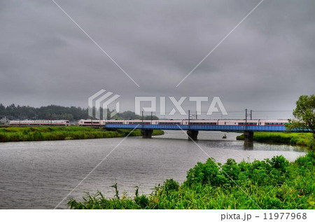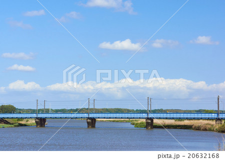 常磐線の鉄橋と恋瀬川の田舎の夏風景