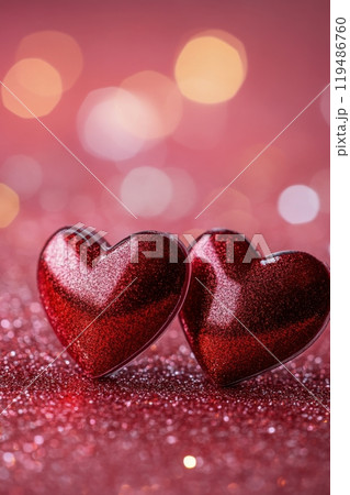 Shiny red hearts on a sparkling background during a festive celebration of love
