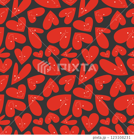 Retro Valentine's Day romantic seamless pattern with cute cartoon hearts. Love background for february 14