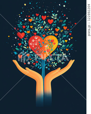 Valentines day whimsical surreal heart in full pink bloom spring landscape