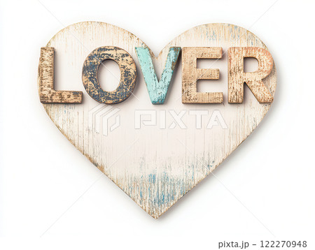 Wooden heart shape with word LOVER in colorful letters, perfect for romantic decor and gifts