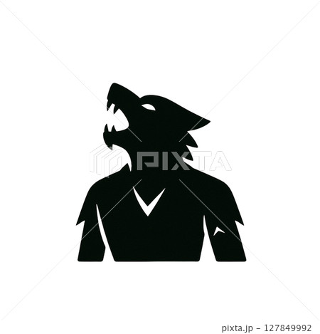 狼男の線画アイコン、イラスト、素材、背景なし、ハロウィン