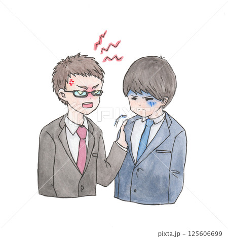 パワハラ(身体的暴力)を受けるビジネスマンのイラスト