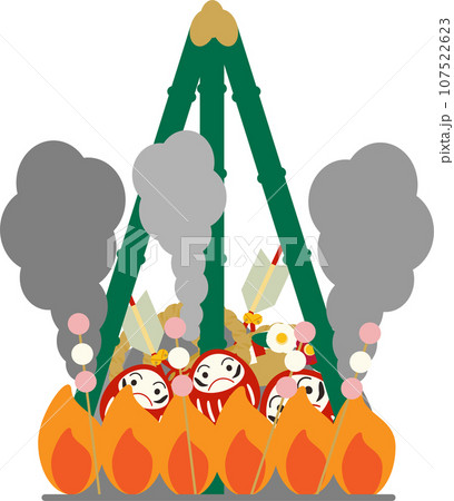 お焚き上げでお正月飾りと餅を焚き上げているイメージイラスト