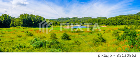 岡山の大湿原、恩原湖の高解像大パノラマ(岡山県苫田郡鏡野町上齋原) ※作品コメント欄に撮影位置情報有