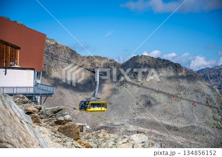 The Diavolezza Cable Car ascends through the stunning Swiss Alps, offering breathtaking views of the Bernina Range and nearby glaciers, ideal for hiking and alpine adventures.