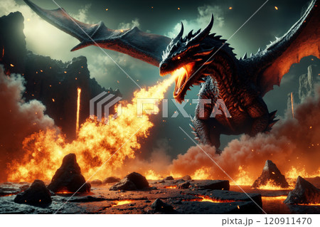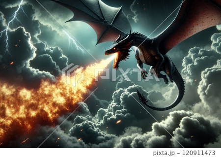 飛びながら冷気を吐く氷のドラゴンのイメージ AI生成画像