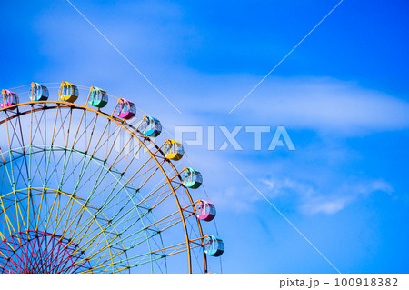 青空に映える遊園地の大観覧車