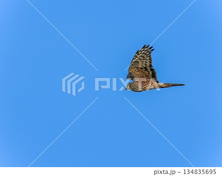 青空バックに悠然と飛ぶチョウゲンボウ