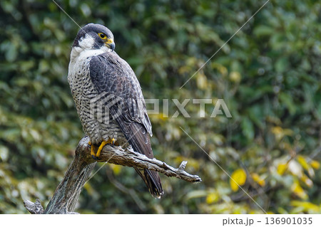 周りを見渡すハヤブサ成鳥