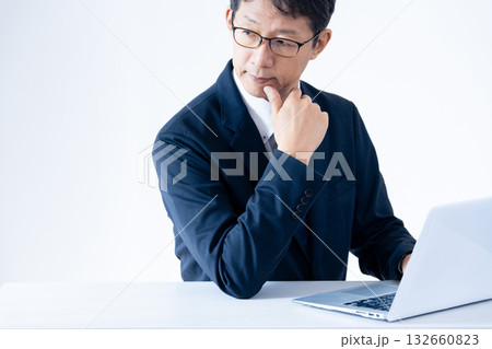 パソコン作業をする中高年のビジネスマン