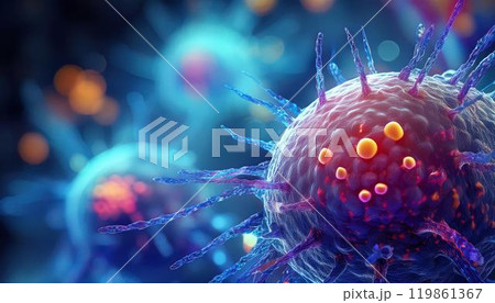 がん細胞などの病原体をイメージした3Dイラスト 医療系素材