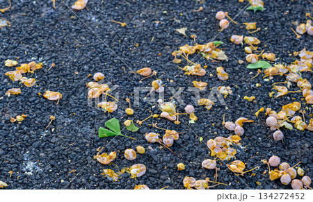 道端のイチョウ銀杏の実と落ち葉アップ